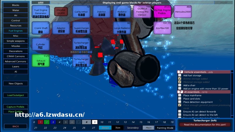 之前说到了,游戏的高自由度,游戏中我们可以没有拘束地创造属于自己的机甲单位,无论是机器人也好,飞船也好,舰艇也好,要让他们动起来,可不是构造一个外壳加一个动力装置这么简单,游戏中的从引擎到气缸到注油器都需要玩家亲手配置上去,通过一连串的衔接才能让自己的单位动起来,更不要说**复杂的火炮系统了。从**能量供给,到炮弹**的结构都需要玩家来设计。