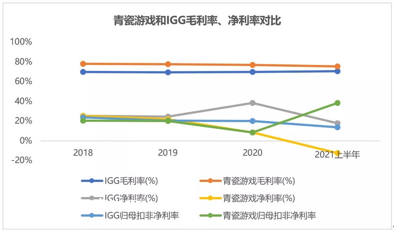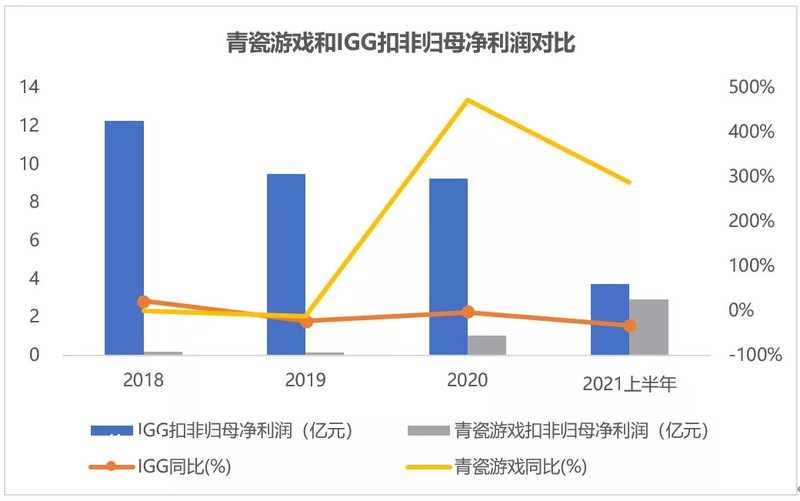 2018年,IGG扣非归母净利润达1.79亿美元(约12.3亿***),是青瓷游戏(0.2亿元)的60倍以上,到了2021年上半年,青瓷游戏2.94亿元的扣非归母净利润已经达到IGG(0.58亿美元,约3.73亿元)的79%!