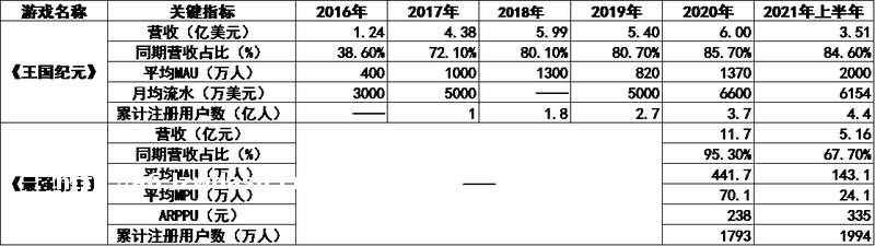 而2016年4月上线的《王国纪元》,营收、月活用户、月均流水等关键指标均持续上升。《王国纪元》2021年上半年月均流水4.8亿港元,创下了5年来新高。
