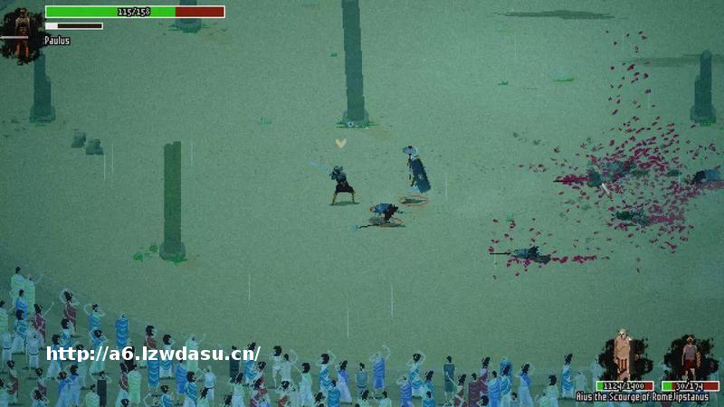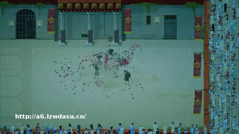 不要看这是一款像素游戏,本作在表现风格上可以说是丝毫不逊色,各种角斗中可以看到的鲜血和厮杀一应俱全,逃跑的角斗士、喷涌而出的鲜血、掉落的兵器、被斩下的断肢、撒落满地的鲜花、狂欢的观众,甚至还有狮子......所有你能想象到的要素都能在游戏中得以体现。