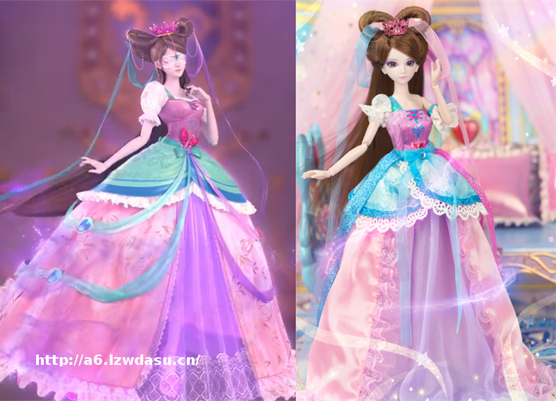梦公主孟艺是叶罗丽冰莲花番外中的**女反派,初次登场时她就给我们留下了深刻的印象,尤其是带着粉红色的蕾丝眼罩,随着自己的沙发床飘然而来的样子,同时她蓝紫**的大蓬蓬裙也充满着梦境般莫测的华丽感,在梦公主变成娃娃版造型时,裙子的造型颜色和发型装饰,甚至连动作都基本还原了,裙子前还有一层紫色轻纱,摘掉了眼罩的梦公主可以说是神还原了。