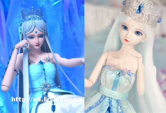 在精灵梦叶罗丽故事中一登场就收获了众多粉丝的冰公主,一直是叶罗丽中高人气的存在,她白色的落地长发和蓝色冰裙都成了经典造型,并且在冰莲花番外中她再一次迎来了造型的高级优化,不过过去的冰公主大家也没有忘记,变成现实版娃娃的冰公主头发看起来更白了,还是那么*悉的托腮造型,连衣服和发冠的颜色都变成银白蓝相加,神态也更加清冷,有点还原素衣冰公主的意思了。