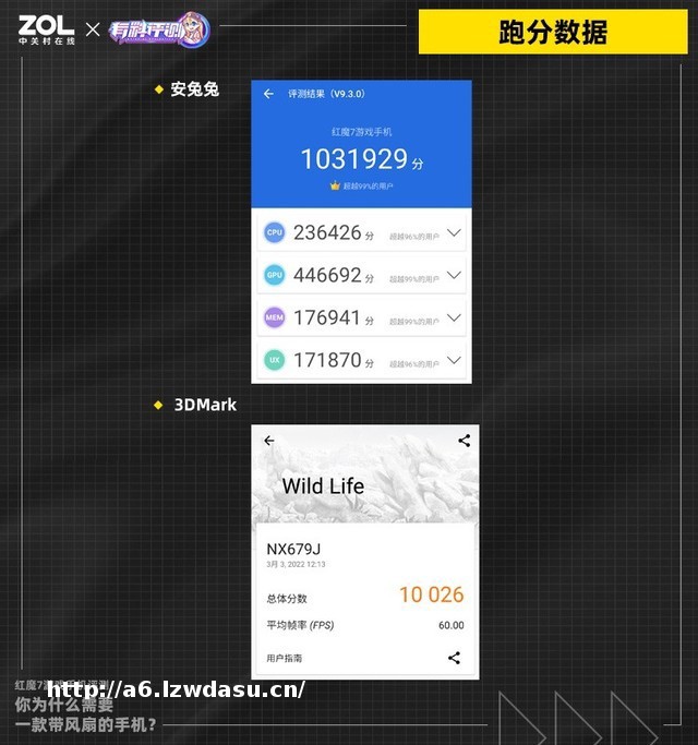 下面便进入实测阶段,红魔7开启疾速散热模式。在基准*能测试中,红魔7的安兔兔跑分测试成绩为103万分,成绩属于同芯片机型中的正常水准。在3DMark的Wild Life测试中,红魔7的取得了10026分,达到了同芯片机型中的**水准,值得一提的是红魔7在Wild Life测试中的平均帧率为60帧,这意味在整个测试中红魔7都没有出现降帧的问题,这表明其持续*能释放能力非常出色。