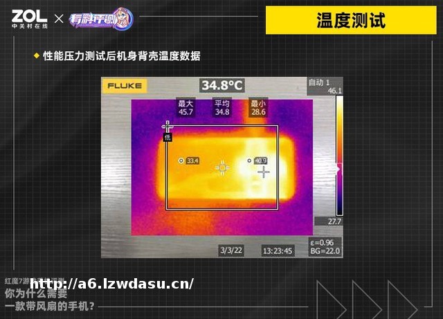 在开启疾速散热功能的情况下进行*能压力测试之后之后,经过测量红魔7后盖的平均温度为34.单点峰值温度为40.达到了当下智能手机中的**散热水准。通过热成像图像,我们也可以清晰看到内置风扇运行时,机身表框出风口涌出的热气流。