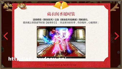 圣诞狂欢party,元旦跨年嗨皮,《御龙在天》双旦活动站正式上线!随着岁末的到来,《御龙在天》圣诞元旦?年度巨献品牌活动站全面开启,双节活动在这里“一网打尽”,所有御龙小伙伴可以在活动站了解游戏在圣诞、元旦期间的全部活动,送礼物、堆雪人、跨年夜……各种*悉的“套路”,玩出不一样的花样!活动精彩内容现在为你揭晓!