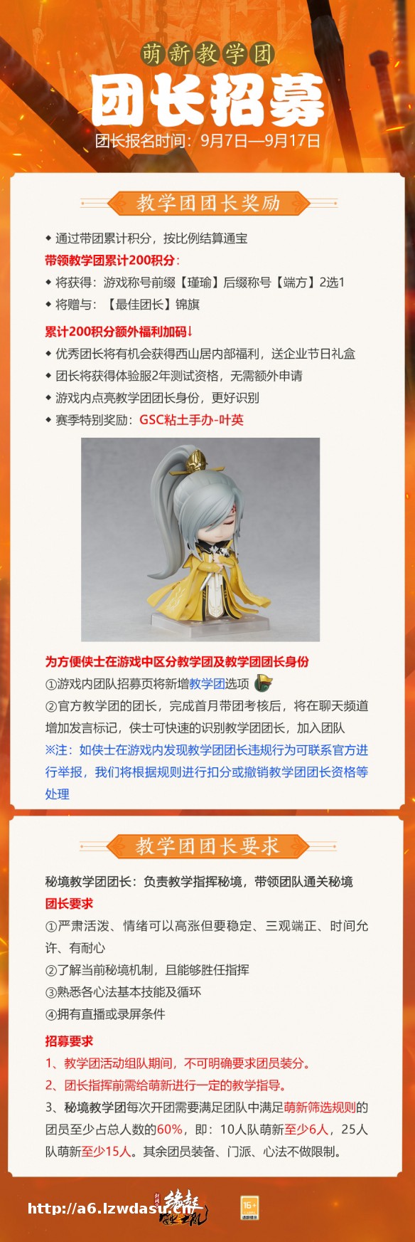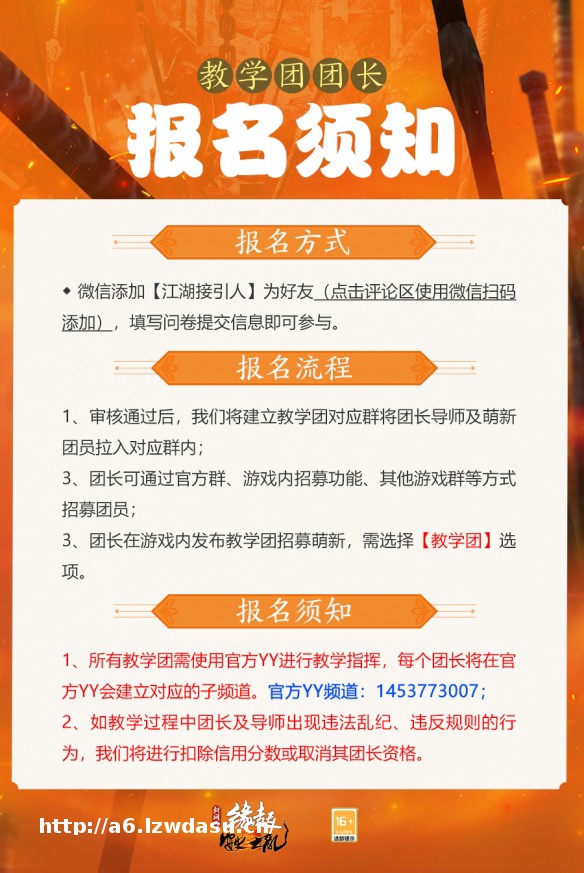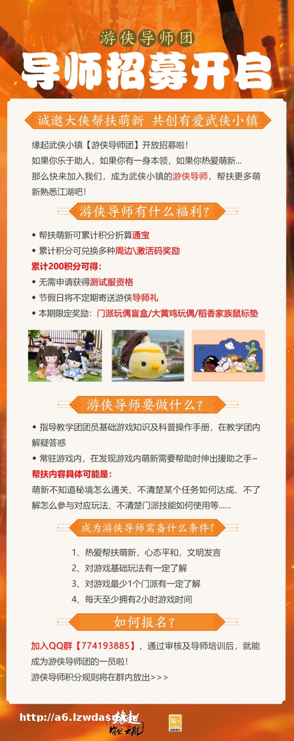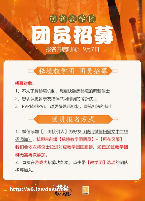 有爱江湖定少不了侠士们的互助!《剑网3缘起》新资料片“安史之乱”上线在即,为打造和平友爱的大美江湖,萌新教学团/游侠导师团**今日同步开启!萌新侠士成为团员可获得来自江湖前辈们的悉心指导,体验江湖就此启程!成为团长的侠士们不但可以帮助萌新快速成长,积累满满成就感的同时还有西山居内部专属节日礼盒、实体周边、团长专属称号等多重权益回馈侠士的热忱之心!