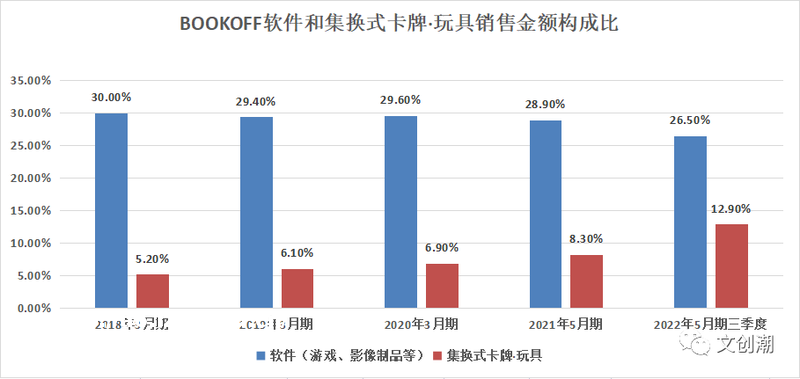 2022年3月期三季度(2021.6.1-2022.2.28),BOOKOFF的商品销售中书籍占比**为29.8%,软件(游戏、音像制品)占比第二为26.5%,集换式卡牌·玩具占比第三为12.9%。