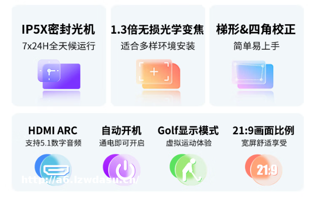 光学变焦,仅需2.5-3.2米就能投出百寸大屏,哪怕是十几平米的小客厅、书房,也能轻松摆放,不用为了巨幕特意腾出大空间,小户型也能实现巨幕自由。支持垂直/水平梯形校正,哪怕机器没有正对着墙面,只需用**器简单点几下,就能快速调出方正的画面,不用反复挪动机器,老人跟着指引操作,也能轻松搞定。