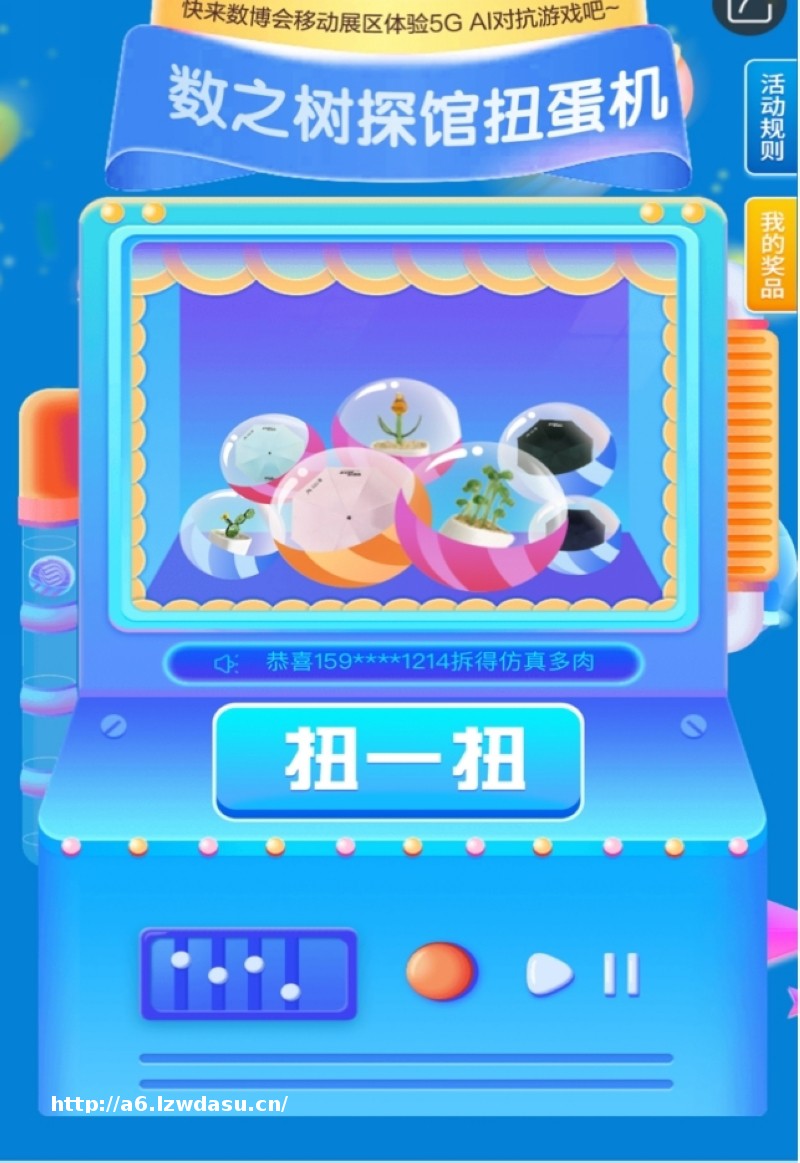 中国移动还为现场观众提前准备了一些打卡小福利:数*会期间,到中国移动展馆前台领取打卡手册,集齐三枚**后,凭打卡手册在中国移动展馆前台登记,就能参与“数&树探馆扭蛋机”小游戏,奖品有琉璃多肉和定制雨伞。