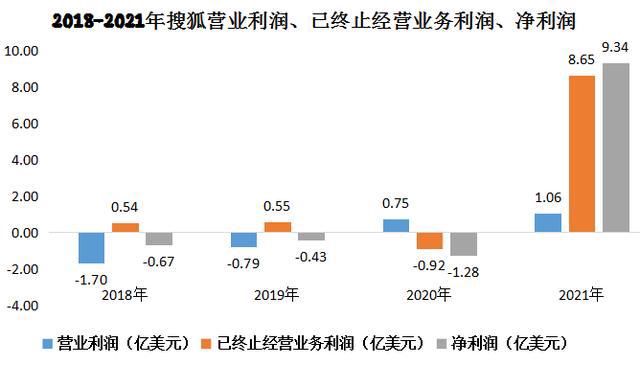 值得一提的是,2021年,搜狐搜狐净利润为9.34亿美元,自2018年以来首次扭亏为盈。其中,有8.65亿利润来自出售搜狗等持股公司股份,但营业利润为1.06亿美元,同比增长41%。
