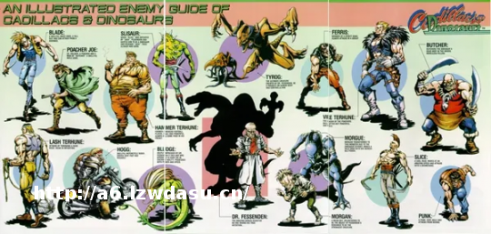 但这都不是重点,重点是虽然我挨了一顿揍,但我还是接触到了一款让我沉迷其中的游戏——《恐龙快打》。这款游戏出自于当年还在起步阶段的卡普空,作品改编自马克?舒尔茨1986年出版的漫画《Xenozoic Tales》(恐龙快打漫画原名)。该作品虽然很成功,也延伸出一系列玩具游戏,不过在更新了几年后故事便戛然而止。后来《Xenozoic Tales》换了新东家,也改了标题开启了全新的故事,但没几期就宣告停刊。