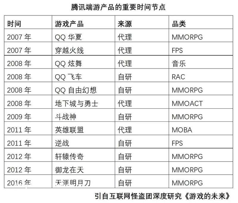腾讯游戏的成功,所以更需要游戏业务作出成绩。但是我们无法断言,如果缺少了一系列的“外部正面因素”,它还能不能称霸游戏市场,或者称霸时间会不会推迟很多年。例如,如果2008年《地下城与勇士》的权没有归于腾讯,或者2011年腾讯未能收购Riot Games,它的端游市场份额将大受影响;如果2016-4年的一连串手游没有打开*面,