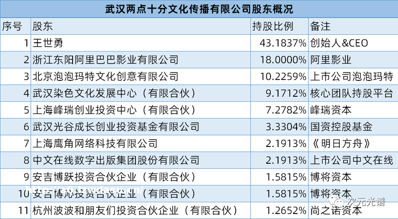 在两点十分这轮融资中,资方以泡泡玛特为主,后者持股比例达10.2259%,成为两点十分的第三大股东;另一家上市公司中文**也参与了本轮融资,持股比例达2.1913%。