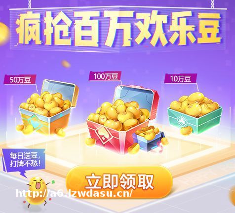 10万豆、50万豆、100万豆赢豆赛每日开放,参与就有机会赢取大量欢乐豆。