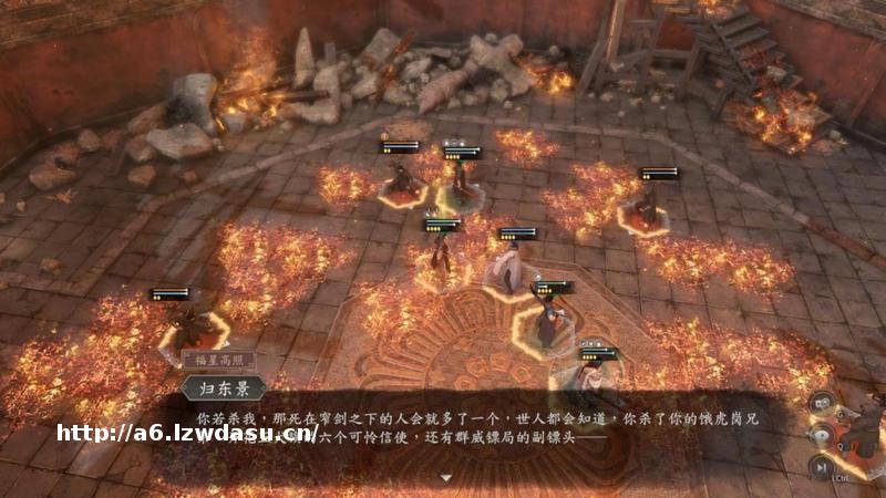《古龙风云录》这里采取的方法是,在**的基础上给出新的推理可能,并且让**走向不同的分支。其中代表是百里长青“五犬旌旗扬”案和铁无双“灭门疑案”。在古龙**《七种武器之霸王枪》中,丁喜说服了“神拳小诸葛”邓定侯,了“福星高照”归东景的阴谋,救下了百里长青。而在游戏中,这个故事有两个分支,如果玩家选择相信丁喜,那么故事发展和**一样。如果玩家选择相信霸王枪传人王盛兰,那就会落入归东景的阴谋,在大宝塔与百里长青开战。虽然最后还是能够击败归东景,但是百里长青却会因为中了陷阱而死去。这样一来,就让**读者可以玩家身份体验到更多的可能,而没有读过**的人,则可体验其中关于运镖劫镖,伪造身份的诸多线索推理。