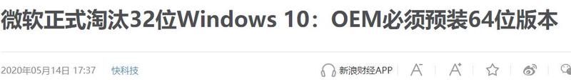当然,微软也没有躺着摆烂,它在2020年就正式淘汰了32位Windows 10。