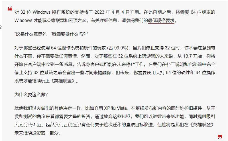 哔哥拿着笔记本,二话不说就给我甩出一个新闻,说的是《英雄联盟》从3月11日起,将不再支持32位操作系统。