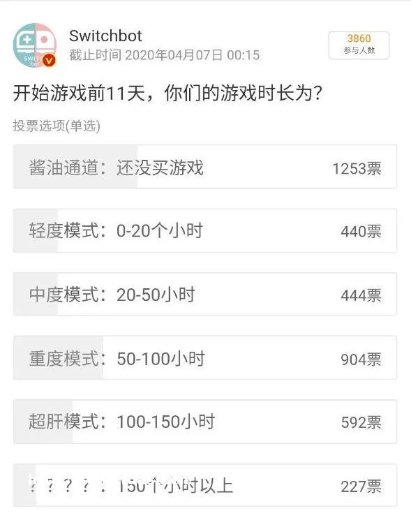 在一项有3860人参与的“开始游戏前11天,你们的游戏时长为?”投票中,我们多少感受到大家*动森的辛苦。在2607位玩家中,有6成以上每天游戏时长超过4.5小时以上,更有3成玩家每天游戏时长超过9个小时。