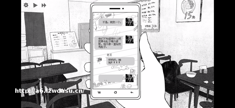 除分支选项的设置外,游戏中,离开学校的赵颖通过智能手机与朋友们联系。游戏则将此类**记录等可交互的碎片化信息植入了剧情之中,也就是说,玩家不仅在阅读着关于赵颖的故事在阅读着关于赵颖叙事的同时,还直接操作了她的日常沟通媒介。例如,当赵颖在小吃店百无聊赖地吃着凉面土豆时,刚挨着板凳手机就叫了起来。
