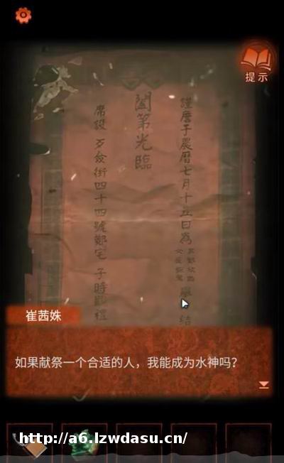 但《红丝缠》却不只是如此。主角崔婉莹与张辰瑞都拥有专业的研究背景(**行业与民俗研究),这就让他们不再是故事的参与者,而成为与玩家同一视角的游戏者。同时两人发现益昌镇里没有其他活者,只能靠各种信息片断(调查、报纸、图画,以及《六转妙法录》的记载)形成被合并的互文*(intertextualité intégrante)[1],才可拼凑出故事的梗概。