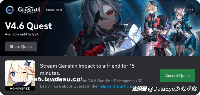 视频悬赏令(Video Quests):以提升认知为主,适用于宣传预告片、新赛季上线、DLC 发布等视频内容。