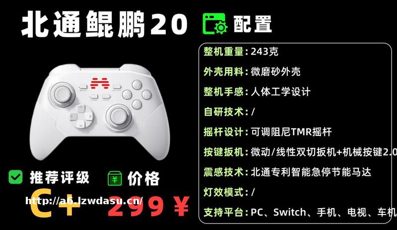 用TMR磁变阻摇杆,搭配**ADC采样芯片,操作顺滑无漂移,玩FPS游戏压枪较稳定。扳机支持霍尔线*与微动双切模式,切换便捷。震感采用四颗马达,但层次感一般。十字键触发偏软,缺乏段落感,格斗游戏易窜键。玩赛车游戏线*扳机手感真实,动作游戏背键操作顺手,但偶尔会有轻微误触。支持2.4G、蓝牙、Type-C有线三种连接方式,支持Xbox、PC、Switch等平台,无明显灯效。蓝牙连接时偶尔会有轻微断连,有线模式下手感稍显笨重。