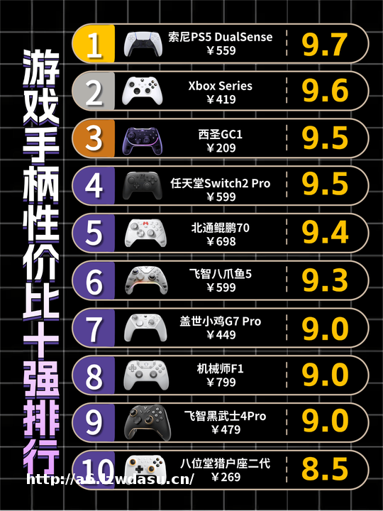 接下来,我会在榜单的基础上,结合自己的上手体验,为大家推荐10款表现不错、价比较高的游戏手柄,方便大家在选购时做个参考。