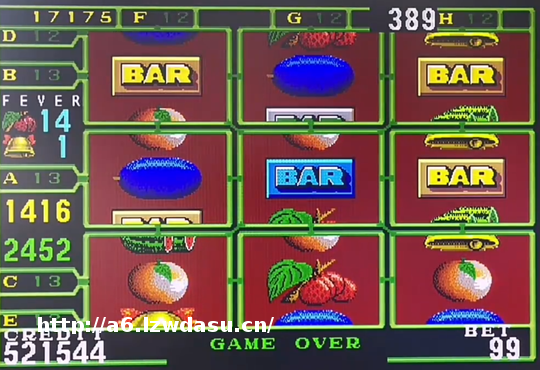 在当年可是非常流行的,几乎十家游戏厅就有五家在使用,而且不止一台。就是**机的玩法,每次押注则依序对A-H联线产生作用,押注**八次,也就是押满所有的联线数,按开始后会个别转动,当全部停止,符合赔率表则为中奖。