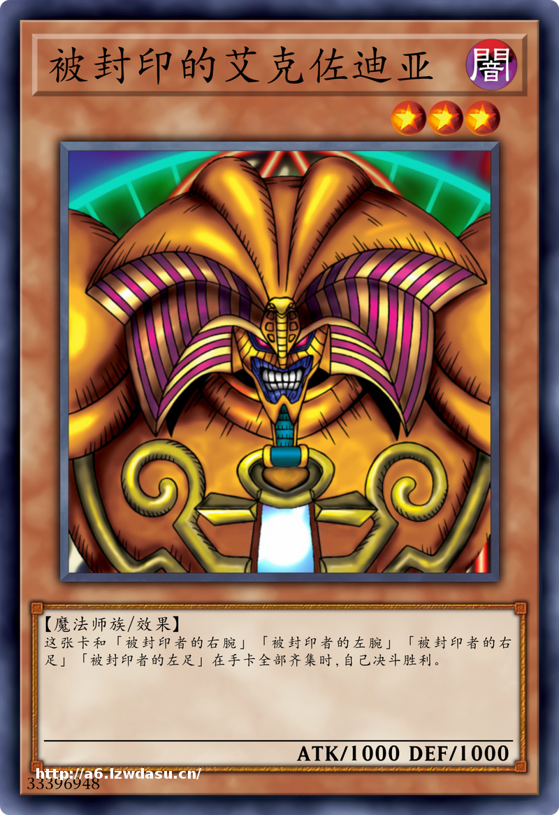 动漫之中的效果,说艾克佐迪亚具有无限大的攻击力,而实际上效果是凑齐五张被封印字段怪兽,就能获取直接胜利,属于特殊胜利方式之一。因此,被封印字段的怪兽,一度被列为限制卡。