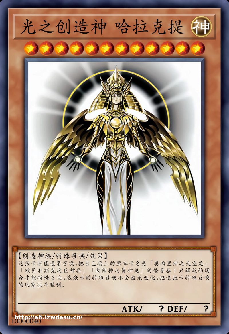 而光之创造神,也是直接获取胜利的特殊存在,优先级也是很高的。但是,三幻神的怪兽都不能在正式比赛中使用,就不要说它了。现实当中,也仅有10000张光之创造神发行过,所以,最强之卡也仅能珍藏了。
