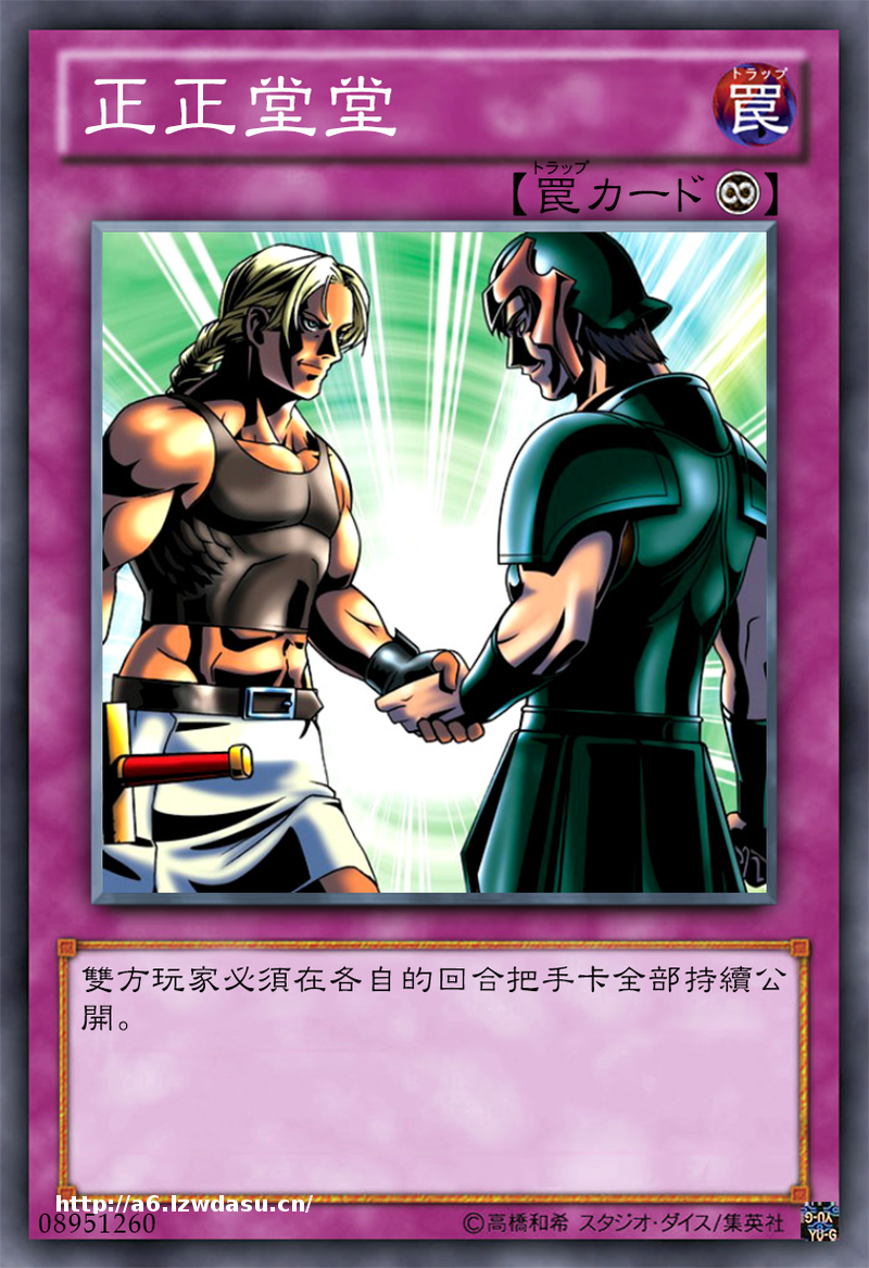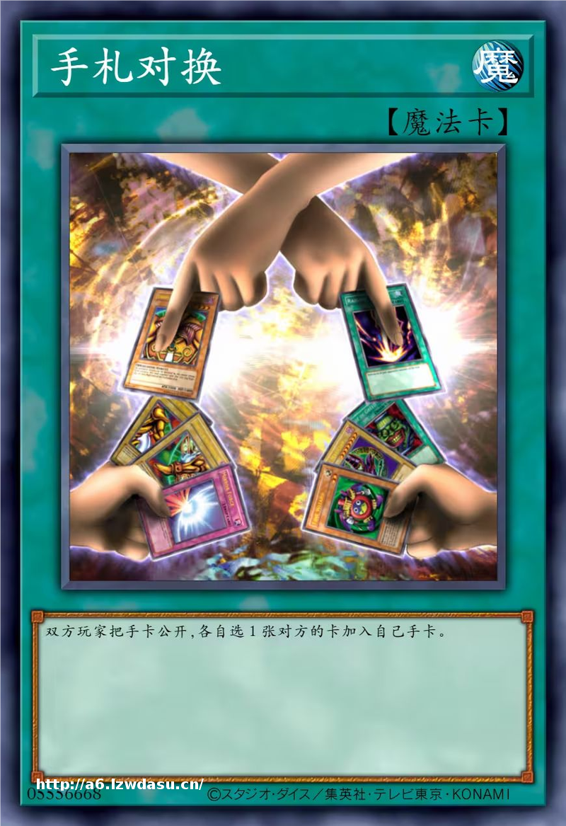 DM时期的经典卡片之一,双方玩家都要把自己的手卡公开,然后各自选择一张对方的卡片加入到自己的手卡里面。