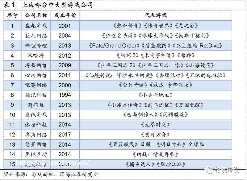 **新势力游戏公司崛起,米哈游、莉莉丝、叠纸、鹰角、心动五家公司合计在2020年的市场份额约为7.85%上海游戏产业专注精品**的积累、重视创新与多元文化的培育,并以鼓励*的区域政策引导,使上海地区诞生了米哈游、莉莉丝、鹰角、叠纸被誉为“上海四小龙”的游戏新势力公司,新势力逐渐摆脱传统渠道的限制,向更高处不断进发。同时,伴随Z世代的崛起、TapTap与B站等上海地区孵化的社区型平台的涌现,以及二次元和女*向品类游戏开始发力,从内容与媒介端逐渐从小众破圈。2020年,米哈游、莉莉丝、叠纸、鹰角、心动五家游戏公司总收入的市场份额约为7.85%,随着新势力游戏公司的快速崛起,其市场份额有望进一步扩大。