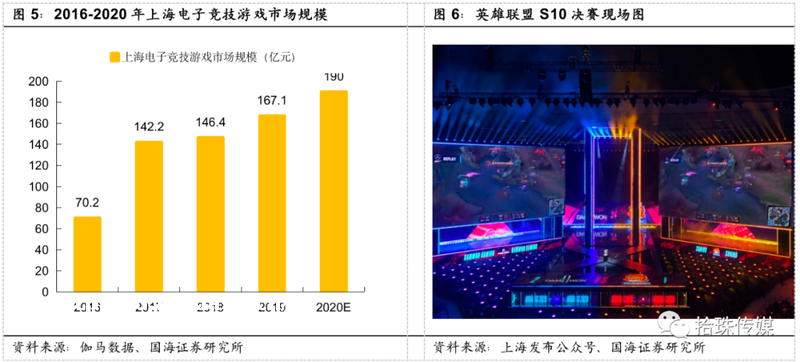 从电子竞技游戏市场规模看,2019年上海电子竞技游戏市场规模为167.1亿元,2020年预计规模超过190亿元,继续保持增长态势。此外,2020年上海电子竞技产业赛事、***、**等领域带来的收入预计达到36.3亿元,2020年上海电子竞技产业规模预计将超过220亿元,连年保持增长。截至2020年7月,价值榜***50的电子竞技***中,有50%的电竞***位于上海,上海是头部电子竞技***的集中所在地,IG、RNG、EDG、F**等位居价值榜***10的电子竞技***均位于上海,上海作为电竞之都,**电竞***的入驻有利于扩大上海在电竞领域的影响力。近年,**电子竞技赛事相继在上海举办,上海已成功举办2019年《Dota2》Ti9、2020年英雄联盟全球总决赛S10等全球**赛事,上海正加速打造“全球电竞之都”。