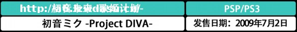 《初音未来 -歌姬计划-》于2009年5月29日发售于PSP平台,名称的“DIVA”是歌剧中女主唱者之意。游戏收录的歌曲大部分是初音未来热潮中的名曲,而玩法方面,则采用的是标准的音游模式,即在指定时间按下适当按钮,依循节奏,连续成功则会获得高分。另外游戏附设“初音未来的房间”,当通过难度挑战、combo数、排名及分数逐步解锁,将会得到装饰房间的物品。让玩家可以在PSP上自定义歌曲的PV视频,甚至可以包括游戏玩法(gameplay)。