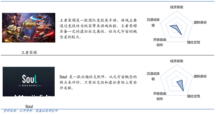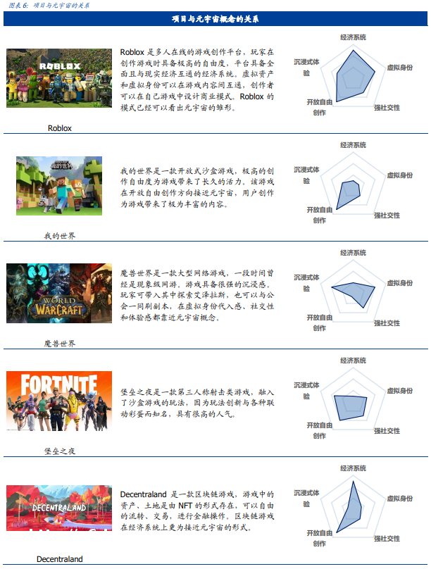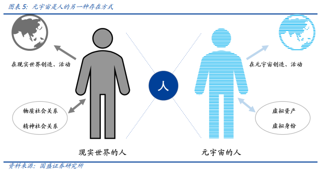 我们认为元宇宙将延续趋势,强化虚拟资产与虚拟身份。用户可用同一个资产身份在不同的内容平台体验,以同一个资产身份可以跨越不同的平台内容。用户可以在自由地在整个虚拟世界中体验和创作,却不受单一平台的限制。