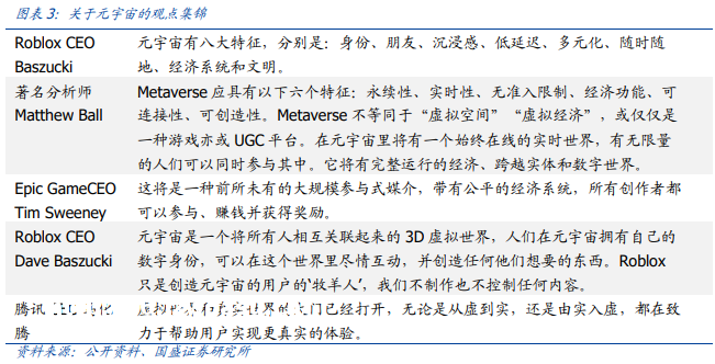 对于元宇宙的概念的看法并不统一,我们整理了市场上的一些观点: