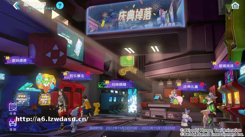 活动内容:活动期间每日开放两个挑战关卡,挑战需要消耗一定数量的周年庆游戏币、队长们可以选择系统提供的数码宝贝参与挑战,挑战成功即可获得超值奖励哦~