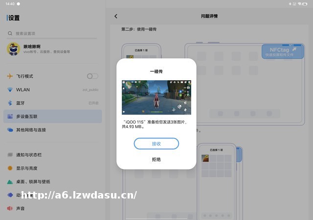 当然,iQOO 11S在办公上的优化体验还不止于此,在当今的数码领域讲究的是多设备互联互通能力,以及跨设备传输体验。无需繁琐的连接步骤,手机与平板仅需简单的一碰就能传输文件与照片,操作效率得到了很大提升。