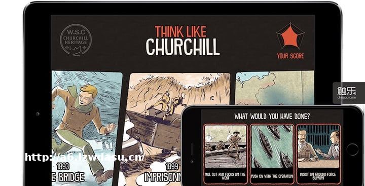 现在轮到历史课了,《像丘吉尔一样思考》就像是一款文字冒险游戏,描绘了 5 个关于英国首相丘吉尔的故事,包括 1893 年青年丘吉尔的轶事、1899 年到 1919 年一战前后的三则故事,以及 1940 年二战爆发时的故事,在掺杂着历史映像和漫画的叙事当中,玩家需要站在丘吉尔的角度,在若干个选项中作出选择,
