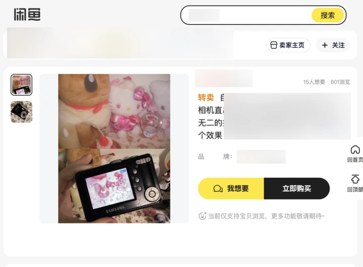 目前,闲鱼 PC 网页版仅支持搜索宝贝、查看详情等功能,