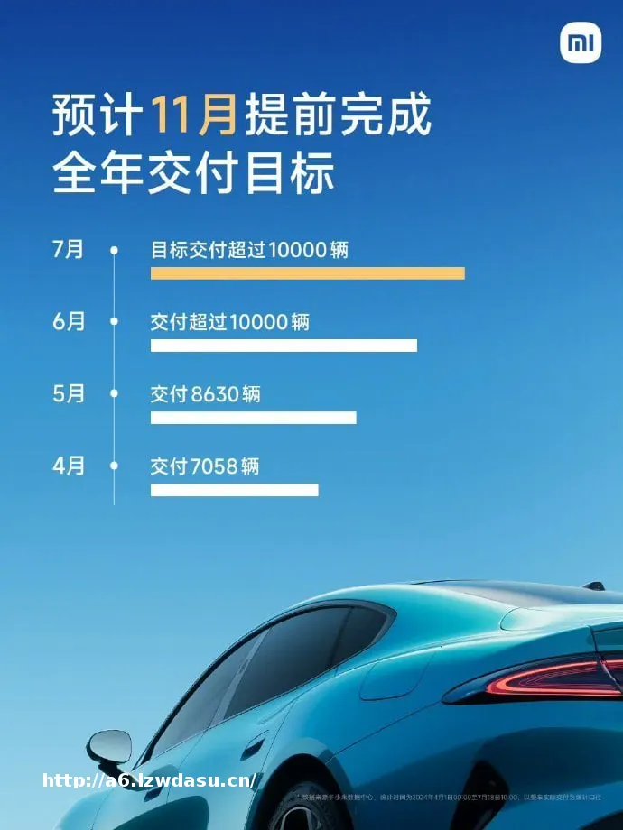 他表示,小米SU7 7 月交付预计也会突破 1 万辆。