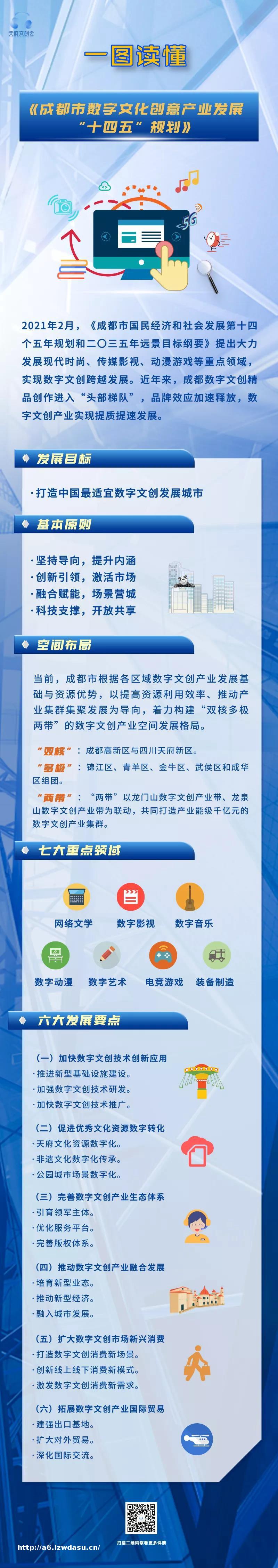 ***日前印发《“十四五”数字经济发展规划》,这是我国数字经济领域的首部***专项规划。成都市为推进数字技术与文化创意深度融合,扩大优质文化产品供给,满足人民群众对更高品质幸福美好生活的文化需求,以创造新消费场景、塑造新消费品牌、吸引新消费群体为目标,以引入新平台、新业态、新**为重点,促进成都数字文创产业迈向全球价值链高端,构建全要素数字文创产业生态体系,全力打造中国最适宜数字文创发展城市。现特编制《成都市数字文化创意产业发展“十四五”规划》。