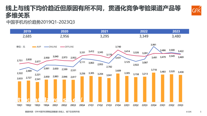 报告指出,中国手机市场的均价在 2019 年仅为 2685 元,近几年开始持续增长,今年截至三季度均价已达 3480 元。