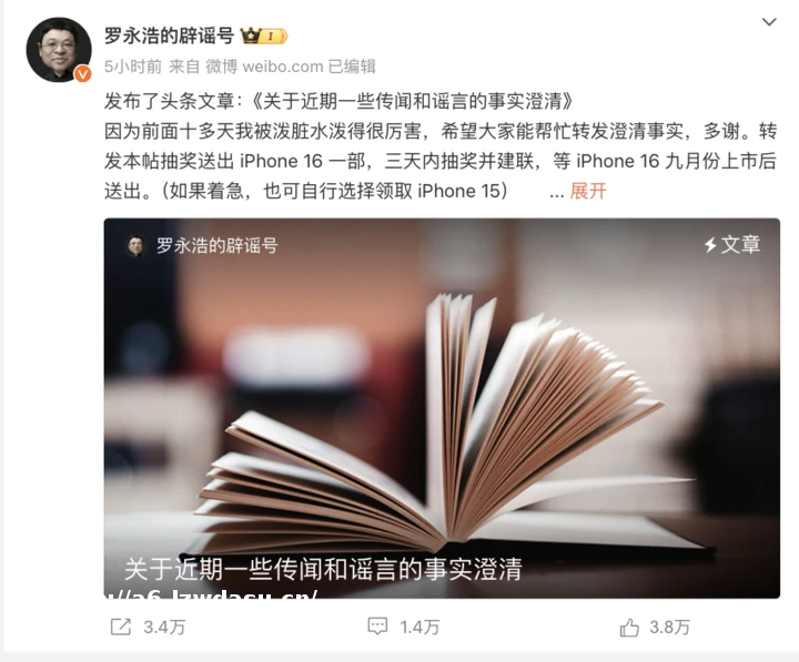 罗永浩发五千字长文回应近期谣言