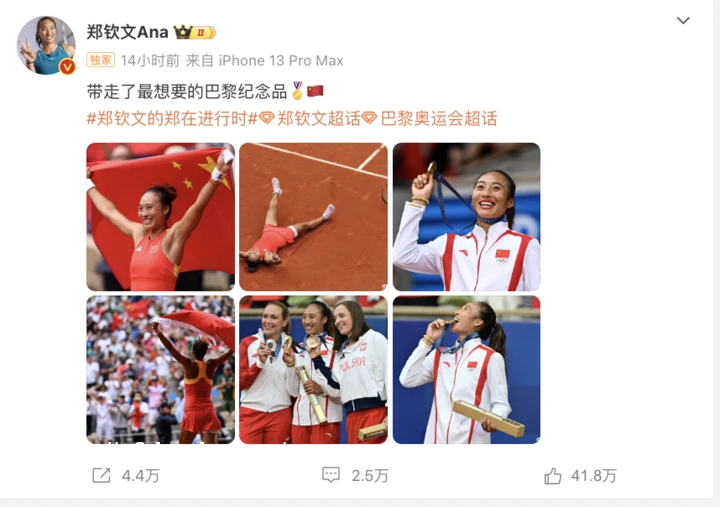 在近期举行的巴黎奥运会奥运网球女单**赛中,中国选手郑钦文夺得**,这也是中国队获得的首枚奥运会网球女单**。