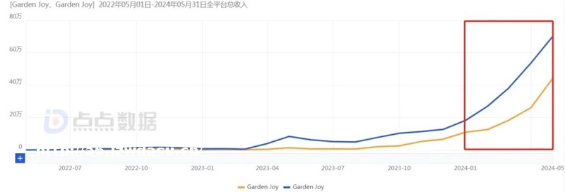相比以上两款产品的月流水峰值,目前刚刚起量的「Garden Joy」还存在比较大的差距。