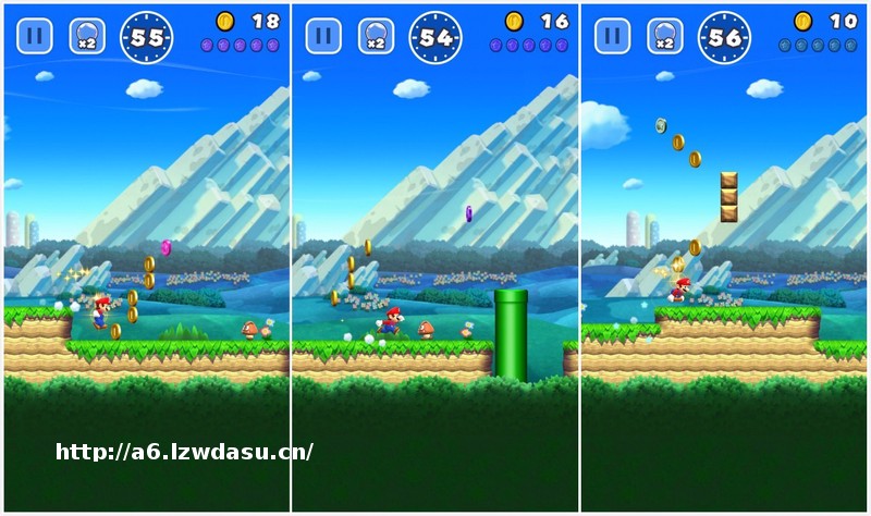 可以说,《**马利欧 酷跑》所有的精髓,都在那些彩色的金币上。每一个关卡,都有粉、紫、绿三种颜色的金币供玩家收集,每收集满一种金币,就可以解锁新的特殊关卡。不过,要想收集满所有的金币,可就没那么简单了。