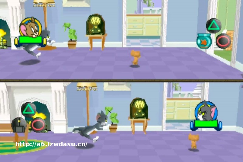 所有汤姆和杰瑞的战争,没办法更生猛和**,但游戏设计者还是找到了一个招式,在电视游戏上玩分屏对战的方式,要求玩家们分别扮演杰瑞和汤姆在一所大屋中进行激烈的竞争。