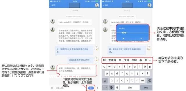 体验过****的用户普遍都得出了一个结论,就是其核心优点是简洁、语音识别,多数人反映其中的最优的体验是沟通中实时语音转文字功能非常好用。可以在说话的同时转为文字发送给对方,对方想听语音的时候,可以在文字下方的播放键再听一下。而且语音可以拖放,方便只听想听的部分。