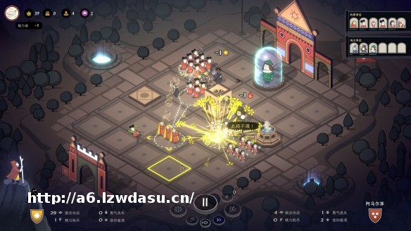 游戏中你将带领你的追随者征服其他城邦,每种单位都拥有针对特定敌人的特殊能力,与协同单位一起部署时候还能触发额外的增益。